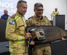 O coronel Hiller entregou homenagem aos coronéis Hudson e Jefferson pelo apoio nestes anos de transição. “Contar com o apoio do comando da Polícia Militar e, de forma muito especial, da Secretaria de Segurança Pública, durante todo esse processo de três anos de desvinculação, foi fundamental para o crescimento do Corpo de Bombeiros. Esse suporte nos deu segurança para avançar em todas as etapas, desde o planejamento até a execução dos novos projetos que hoje fortalecem a corporação”, afirmou.