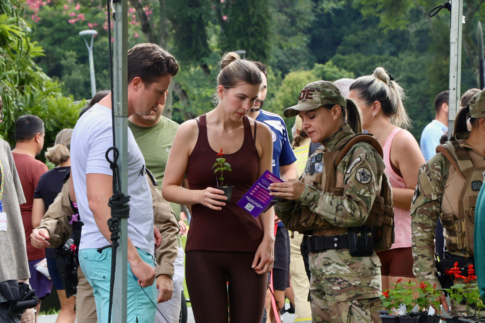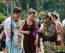 MOBILIZAÇÃO – Na manhã deste sábado (14), nas cidades de Curitiba, São José dos Pinhas, Colombo, Paranaguá, Londrina, Maringá, Paranavaí, Ponta Grossa, Cascavel, Foz do Iguaçu e Francisco Beltrão, as Forças de Segurança do Paraná dão continuidade as ações do Mês Mulher Segura com uma grande mobilização em diversas praças para levar conscientização sobre o combate à violência contra a mulher.