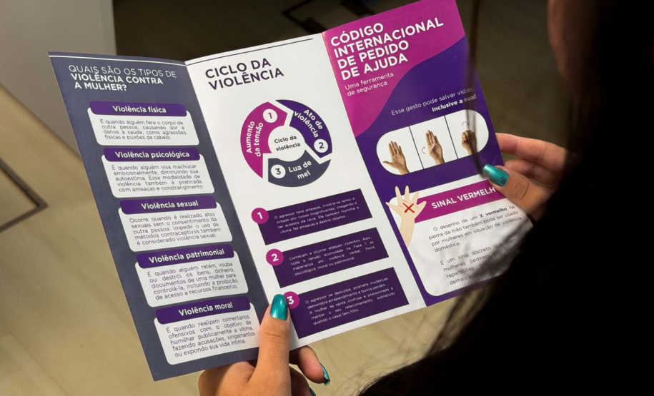A Secretaria da Segurança Pública do Paraná (SESP) vem reforçando neste mês de março as ações de conscientização do Mulher Segura, programa com foco no combate à violência doméstica e ao feminicídio por meio de palestras e distribuição de material informativo. Neste sábado (14), a ação acontecerá na Capital e em algumas cidades do Interior e, entre os alertas passados a população estão a identificação dos cinco diferentes tipos de violência: física, psicológica, sexual, patrimonial e moral.