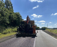 O Departamento de Estradas de Rodagem do Paraná (DER/PR), autarquia da Secretaria de Infraestrutura e Logística (SEIL), está realizando melhorias no pavimento da PR-281 entre Salto do Lontra e Santa Izabel do Oeste, na região Sudoeste. A pista está recebendo a aplicação de microrrevestimento asfáltico usinado a frio em cerca de cinco quilômetros, serviço que protege o pavimento contra a ação do clima e rejuvenesce a camada superficial.