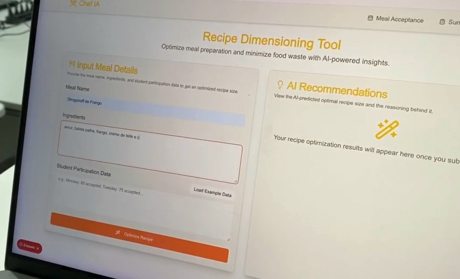 "Com base nisso, a IA ‘calcula’ as quantidades aproximadas das porções necessárias e elabora receitas possíveis a partir daqueles dados. As cozinheiras então, acessam essas informações numa outra interface, disponível nas cozinhas, sabendo as quantidades certas de alimento a serem preparadas”, completa.