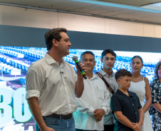 O governador Carlos Massa Ratinho Junior compareceu nesta segunda-feira (26) à abertura da exposição “Instante do Olhar”, que marca os 20 anos de carreira do fotógrafo paranaense Jonathan Campos. Intensa, a mostra ficará aberta ao público na Sala de Vidro do Museu Oscar Niemeyer (MON), em Curitiba, entre 27 de janeiro e 22 de fevereiro. A iniciativa tem entrada gratuita, com acesso pelo vão-livre.