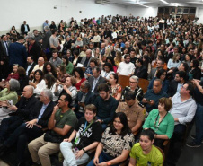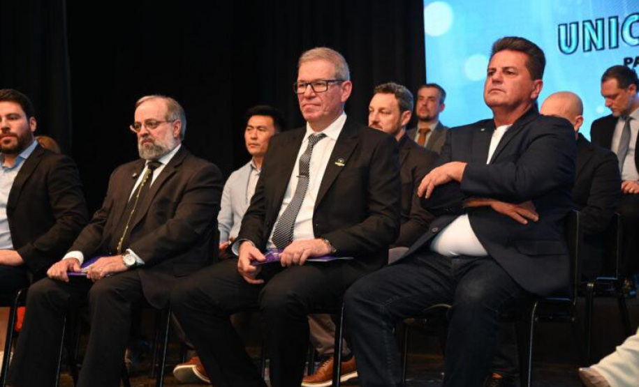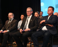 PRESENÇAS – Estiveram presentes no evento reitores e vice-reitores das sete universidades estaduais do Paraná, além de representantes do Instituto Federal de Educação, Ciência e Tecnologia do Paraná, da Universidade Tecnológica Federal do Paraná (UTFPR) e da Universidade Federal da Fronteira Sul (UFFS), da Fundação Araucária e do Instituto de Tecnologia do Paraná, bem como membros do executivo e legislativo municipal.