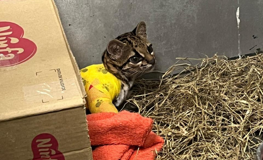 Depois de quase nove meses de tratamento e reabilitação, técnicos do Instituto Água e Terra (IAT) participaram na quarta-feira (17) da soltura de um gato-maracajá (Leopardus wiedii) que foi vítima de um atropelamento em abril na BR-487, no sentido Capitão Leônidas Marques, na região Oeste. O animal, uma fêmea adulta pesando três quilos, foi encontrado com uma das patas dianteiras quebrada em uma oficina mecânica da região, refugiado dentro do veículo que o atropelou.