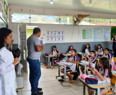 Nesta semana, no Norte Pioneiro, na 19ª Regional de Jacarezinho, profissionais de saúde realizaram uma ação educativa em unidades de ensino de São José da Boa Vista, Figueira e Jaboti. Os alunos receberam orientações sobre os perigos e os cuidados necessários para evitar acidentes com escorpiões, aprenderam como identificar o animal e até puderam observar exemplares de forma segura, apresentados pelos técnicos.