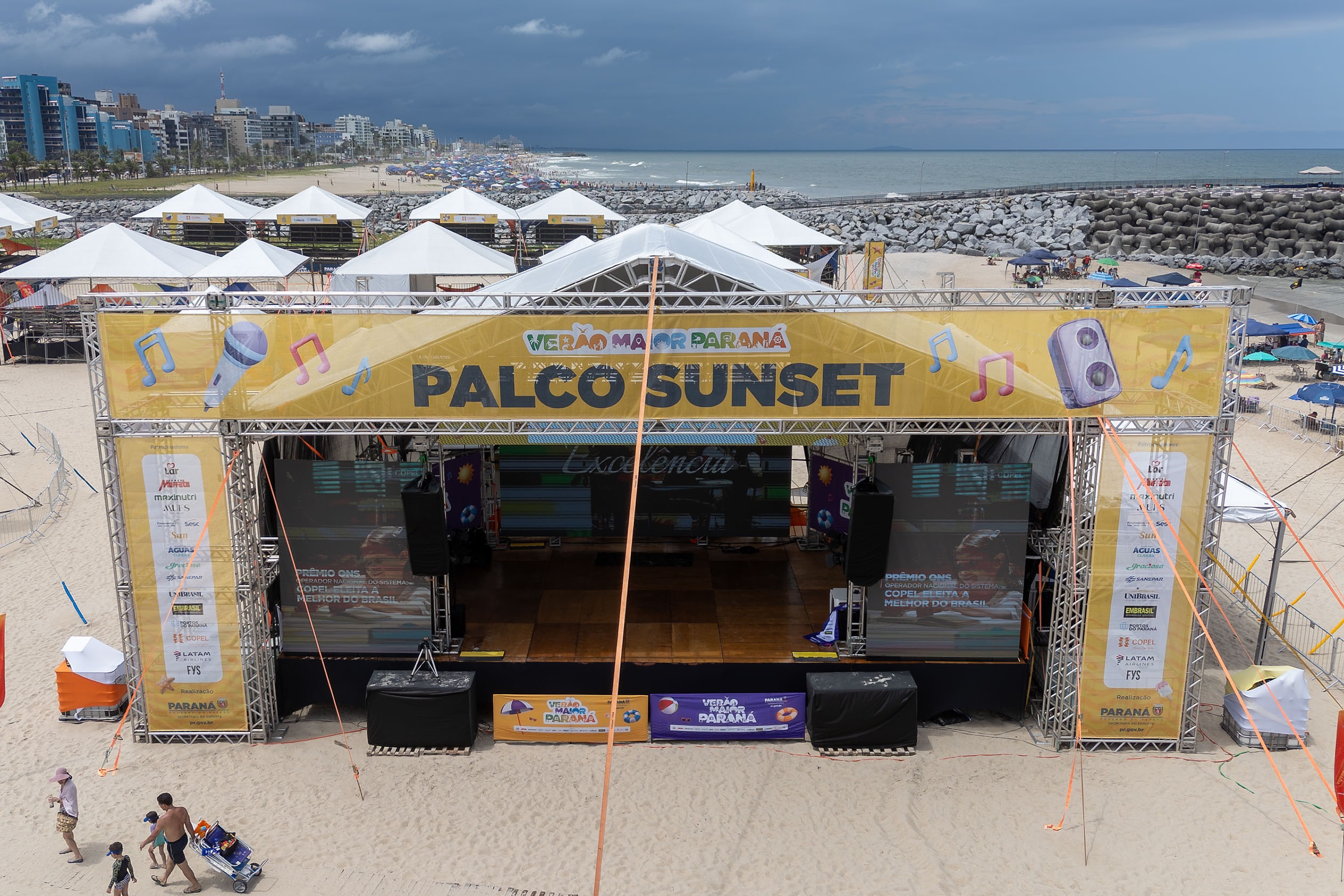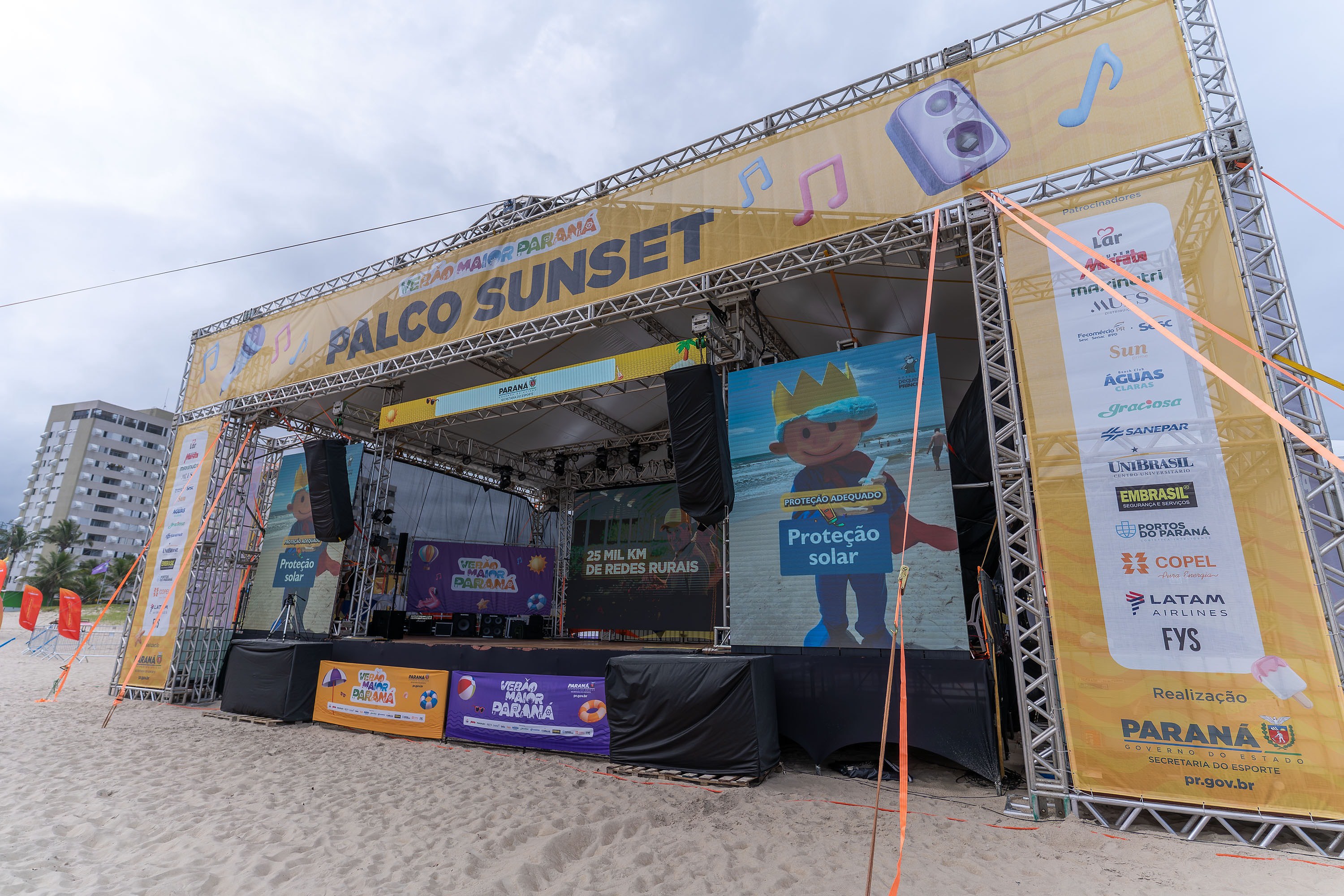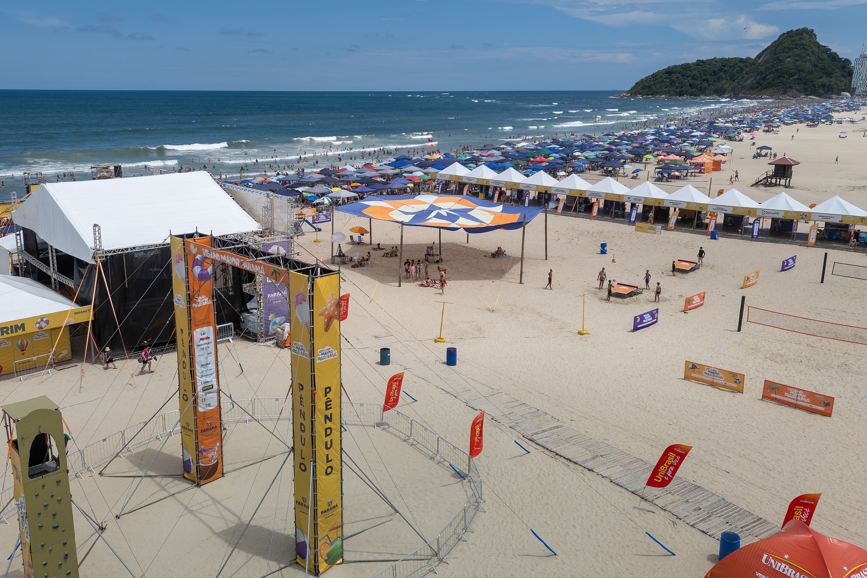PALCOS - Entre 2 e 31 de janeiro, Palcos Sunset instalados em Caiobá, Guaratuba, Shangri-lá, Porto Rico e Porto São José receberão 52 shows gratuitos com artistas paranaenses. Paralelamente, os Jogos de Aventura e Natureza seguem em calendário contínuo, com 45 eventos distribuídos em 13 semanas, além de competições de grande porte como Maratona Aquática, ITF de Beach Tennis e o Desafio Olímpico de Vôlei.