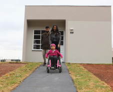 “Para nós isso é uma conquista. Poder dar um lugar para que ela possa se locomover de maneira independente, não temos nem palavras. Fizemos o cadastro no site da Cohapar, conseguimos esse desconto, foi uma ajuda e tanto, graças a Deus”, emociona-se. “Acho que o sonho de qualquer pai e mãe de família é conquistar o lar, então a gente fica sem saber explicar o que estamos sentindo”, conta Marcos.