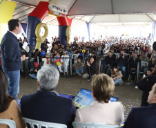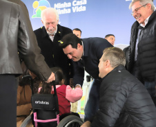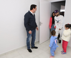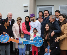 AGENDA EM PONTA GROSSA – Além da entrega das 275 casas, o governador Ratinho Junior também inaugurou nesta sexta-feira o Condomínio do Idoso Parque dos Sabiás. Com 40 unidades destinadas ao público a partir de 60 anos, por meio de aluguel social, o local conta com ampla área comum de convivência. Este é o sétimo Condomínio do Idoso inaugurado pelo Estado e outros 12 estão em obras em diferentes regiões.