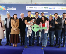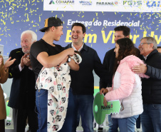 O sonho da casa própria se tornou realidade para 275 famílias de Ponta Grossa nesta sexta-feira (10). O governador Carlos Massa Ratinho Junior participou da entrega das chaves da última etapa do Residencial Bem Viver Uvaranas, um dos maiores empreendimentos habitacionais do município dos Campos Gerais, construído em formato de bairro planejado com o apoio do Governo do Estado. Ao todo, o projeto possui 1.475 unidades, sendo que 1.200 já haviam sido entregues anteriormente.