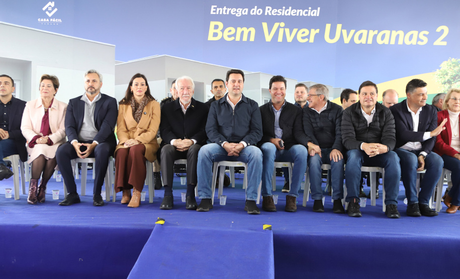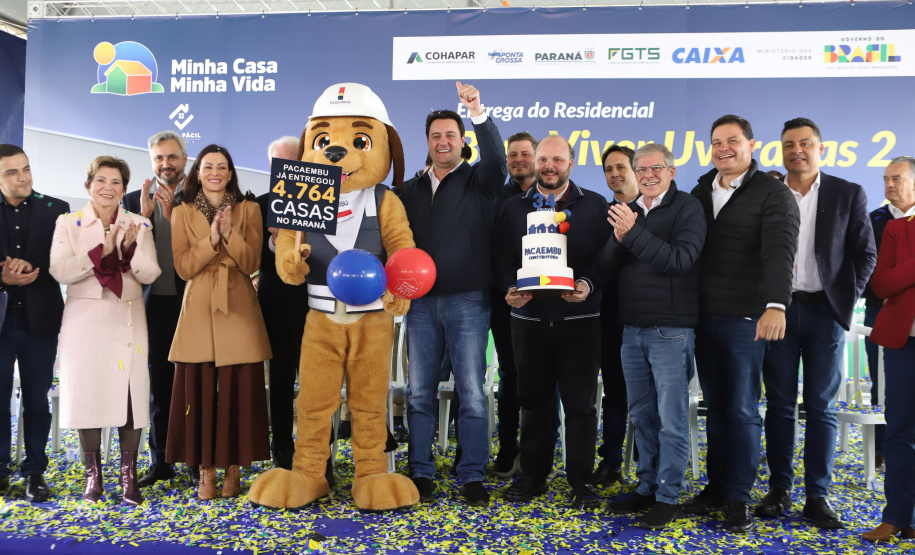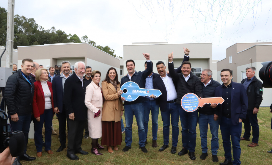 PRESENÇAS – Participaram da solenidade de entrega das casas em Ponta Grossa o vice-governador do Paraná, Darci Piana; o diretor-presidente do DER, Fernando Furiatti; e o chefe da Casa Militar, coronel Tordoro. Também estiveram presentes o deputado federal Aliel Machado, e os deputados estaduais Mabel Canto, Márcia Huçulak e Fábio Oliveira; o CEO da Pacaembu Construtora, Fernando Almeida; o diretor de Negócios da empresa, Bruno Villar; o diretor de Engenharia, Marco Cury; o superintendente de Rede da Caixa Econômica Federal, Gilberto Onofre da Luz; e a superintendente de Habitação da Caixa, Vanessa Maria Kozicki; o vice-prefeito de Ponta Grossa, pastor Moisés Faria; o prefeito de Sengés, Gerson; o reitor da Universidade Estadual de Ponta Grossa (UEPG), Miguel Sanches.