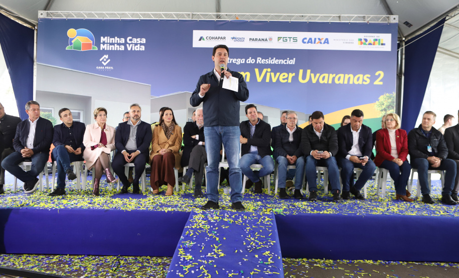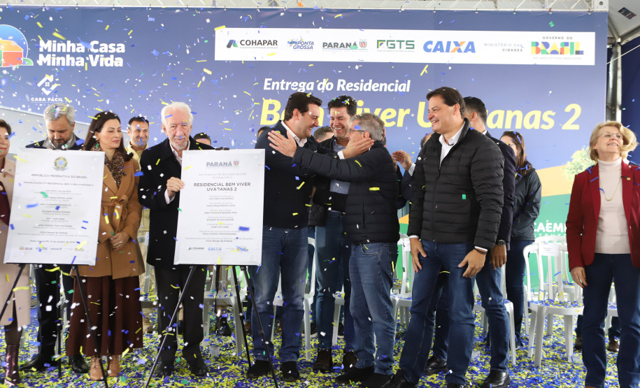 “O resultado é que o Paraná passou a ser o estado que mais constrói casas no Brasil. Entre entregues e em obras, são mais de 100 mil moradias, sendo que somente em Ponta Grossa são 8 mil unidades, quase 10% de todas as casas construídas no Paraná, somando R$ 1,3 bilhão em investimentos em parceria com o governo federal”, acrescentou o governador. “Essas construções geraram 24 mil empregos diretos, movimentando comércio, mercados, farmácias, postos de combustível e todo o setor de serviços. Isso faz a economia girar e ajuda Ponta Grossa a crescer.”