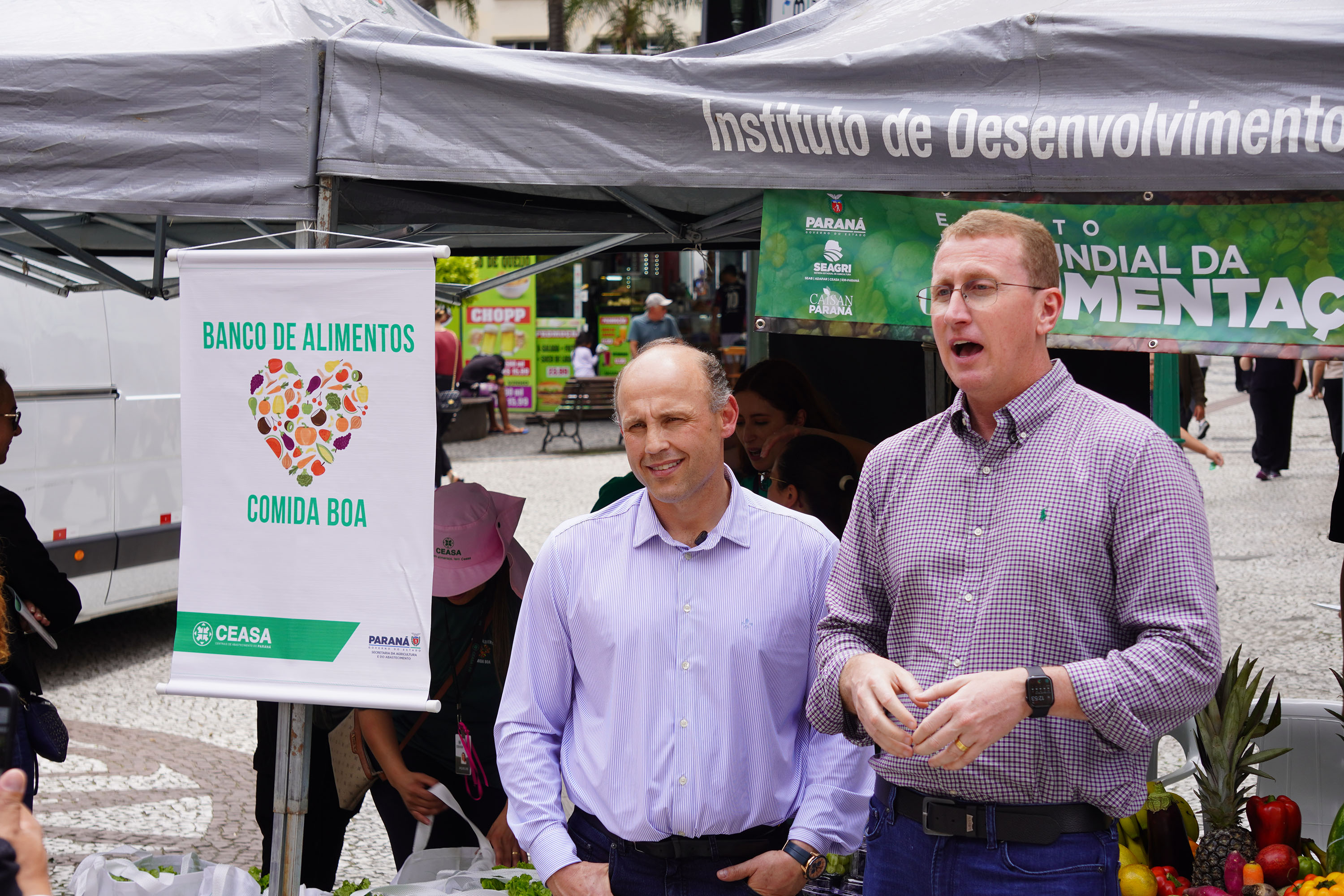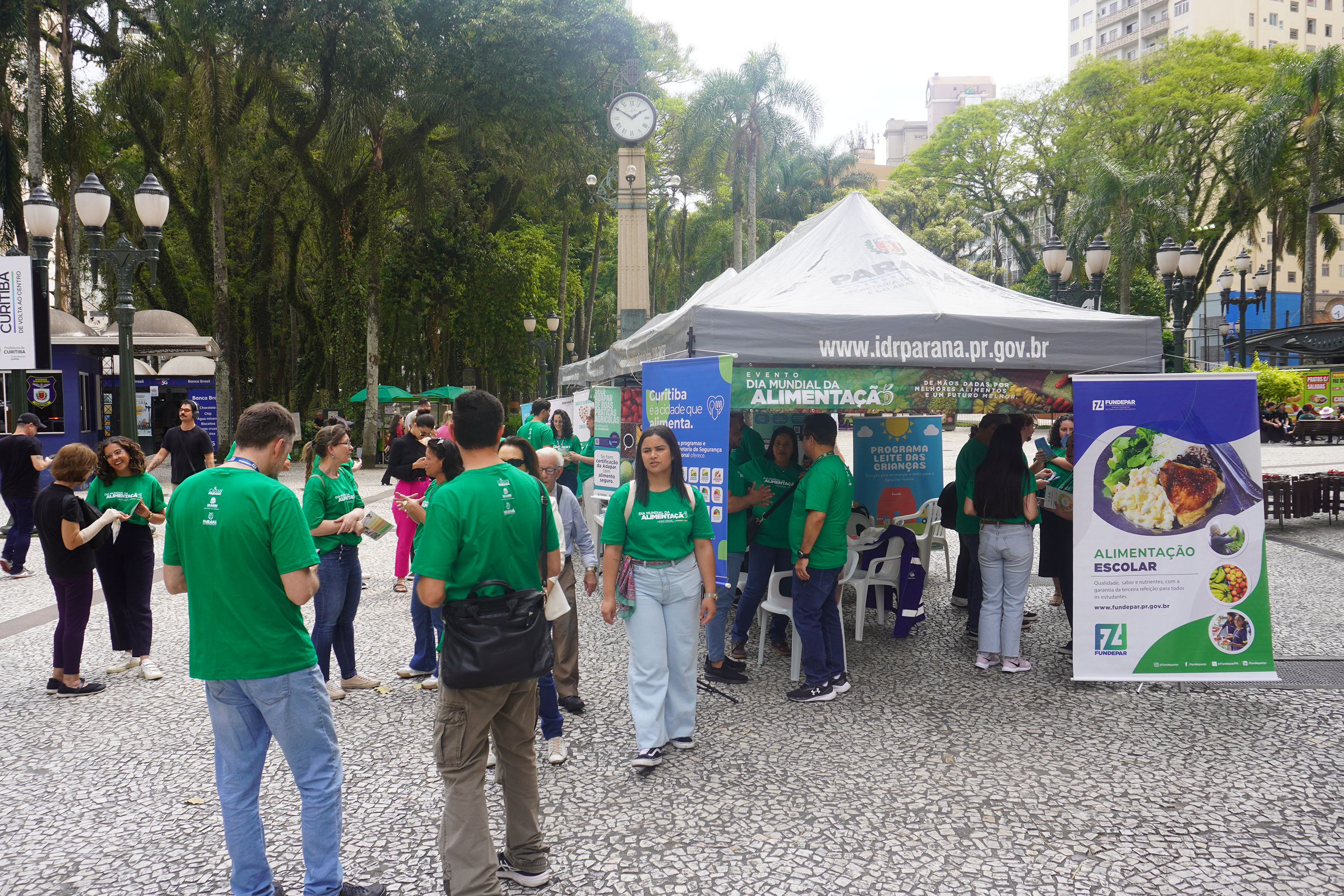 O Sistema Estadual de Agricultura (Seagri) organizou ações para celebrar o Dia Mundial da Alimentação, comemorado nesta quinta-feira (16). As ações foram pensadas e executadas com o intuito de conscientizar a população relacionadas à nutrição, alimentação, qualidade e variedade dos alimentos produzidos no Paraná. Foram responsáveis pelas ações representantes da Secretaria de Estado da Agricultura e Abastecimento (Seab), da Agência de Defesa Agropecuária (Adapar), do Instituto de Desenvolvimento Rural (IDR-PR) e das Centrais de Abastecimento (Ceasa-PR).