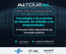 Será realizada nesta quarta-feira (4), em Curitiba, a 6ª edição do AITOUR, movimento global que conecta tecnologia, estratégia e impacto, com foco no futuro do Governo Digital no Brasil. O evento conta com o apoio do Governo do Paraná, por meio da Secretaria da Inovação e Inteligência Artificial (SEIA), e acontecerá no auditório do Sebrae/PR.