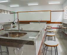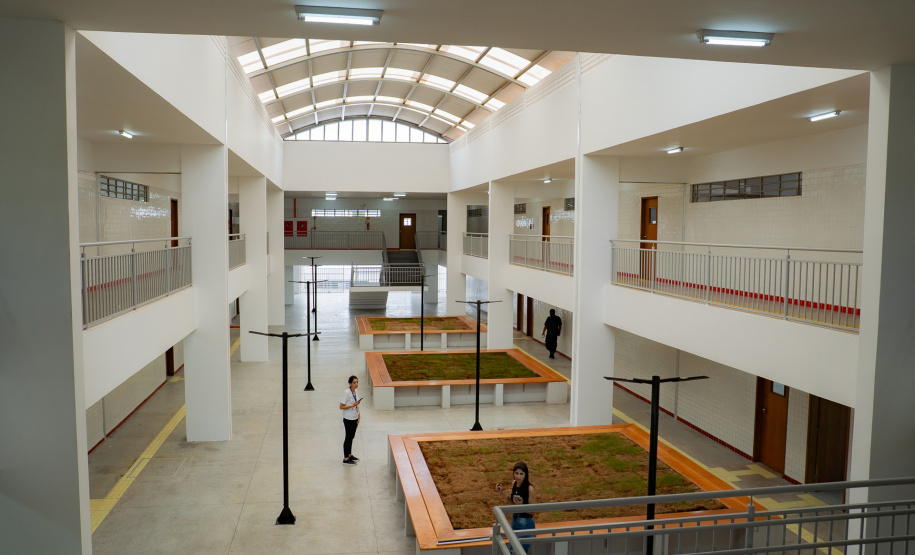 ESTRUTURA – Concluída pelo Instituto Paranaense de Desenvolvimento Educacional (Fundepar), a nova unidade foi erguida em um terreno de 12,1 mil metros quadrados, com 6,6 mil metros quadrados de área construída. Conta com 12 salas de aula, auditório, biblioteca, cozinha, refeitório, anfiteatro, quadra poliesportiva coberta, laboratórios e demais ambientes administrativos e pedagógicos.