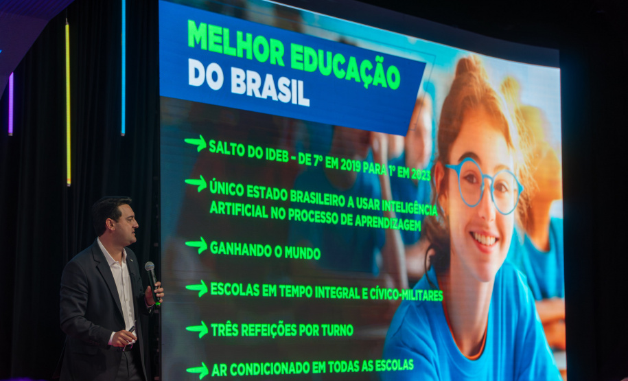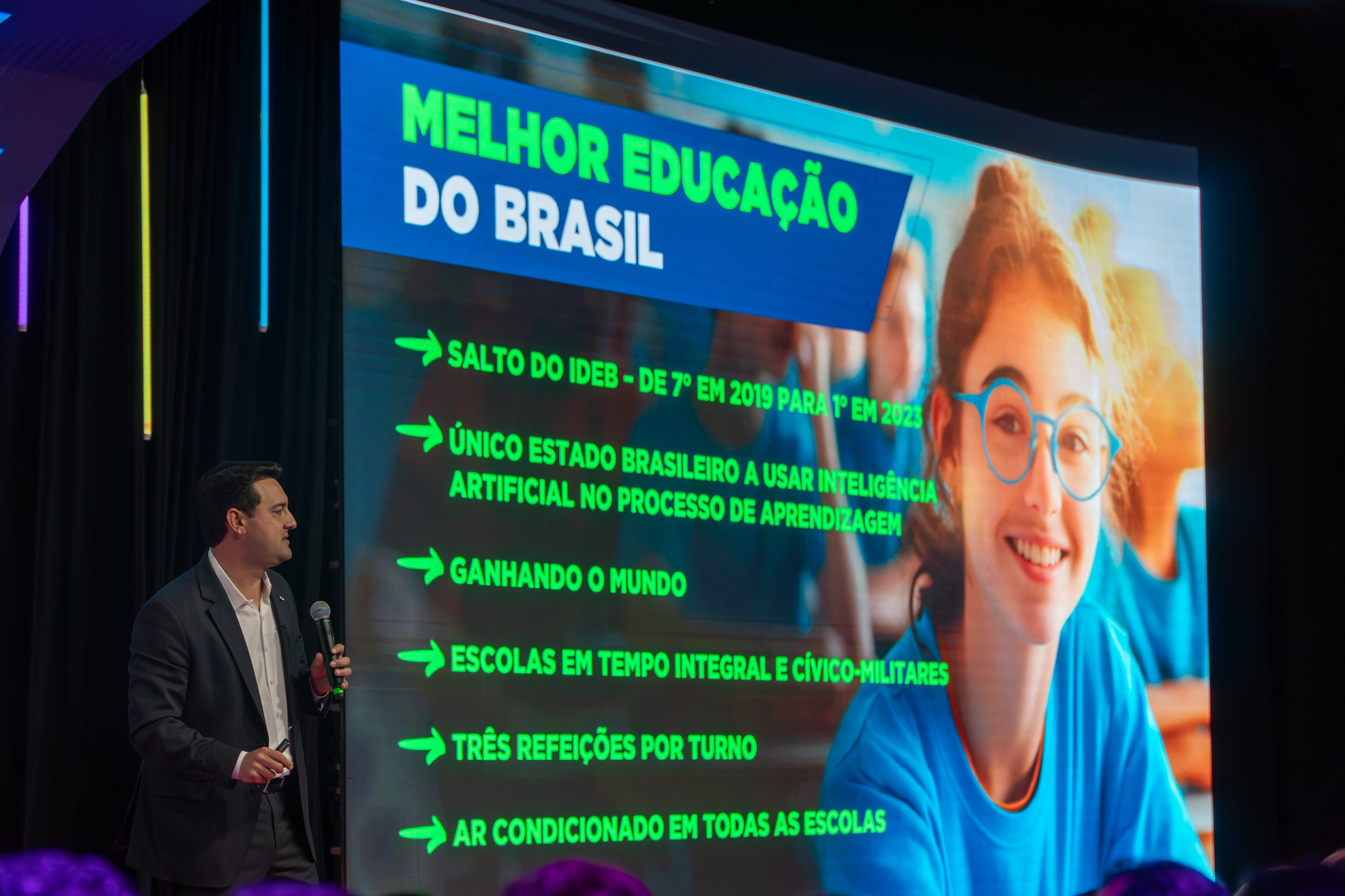 Na palestra de abertura, o governador apresentou dados que confirmaram a posição de destaque do Paraná no cenário econômico nacional. Ele ressaltou que o Estado mantém um ritmo de crescimento acima da média brasileira, com um Produto Interno Bruto (PIB) de cerca de R$ 700 bilhões, o que fez o Estado passar da quinta para a quarta maior economia do País, e expansão de 6,9% em 2023, enquanto a média nacional foi de 2,9%.