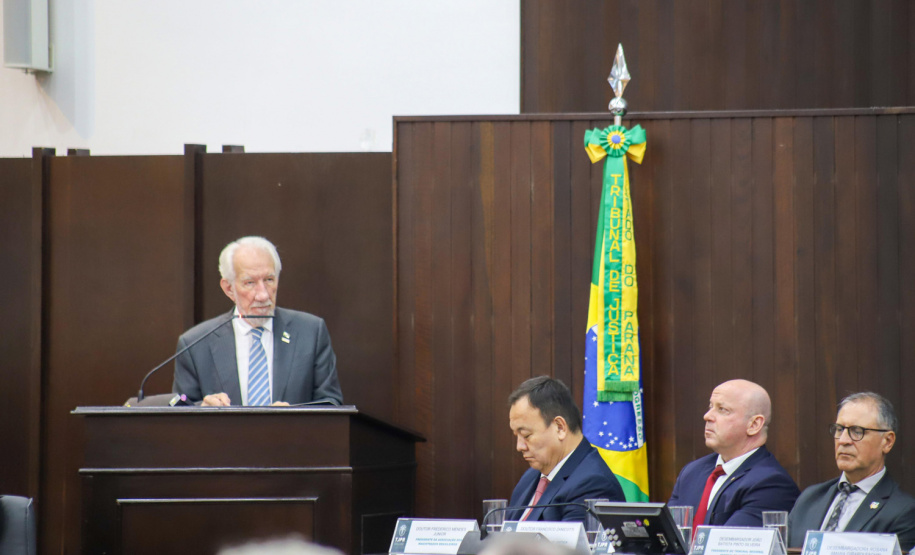 PRESENÇAS – Também participaram da cerimônia o presidente do Supremo Tribunal Federal (STF) e do Conselho Nacional de Justiça (CNJ), ministro Luiz Edson Fachin; o presidente do TRF-4, João Batista Pinto Iberê; o presidente da Ordem dos Advogados do Brasil (OAB) Paraná, Luiz Fernando Casagrande Pereira; o presidente do TJ de Santa Catarina, Francisco José Rodrigues de Oliveira Neto; o procurador-geral de Justiça do Paraná, Francisco Zanicotti; e o primeiro vice-presidente do TJ do Rio Grande do Sul, Ícaro Carvalho Osório.