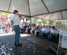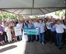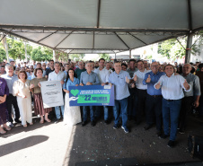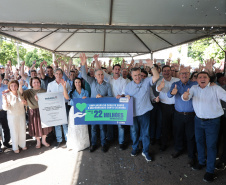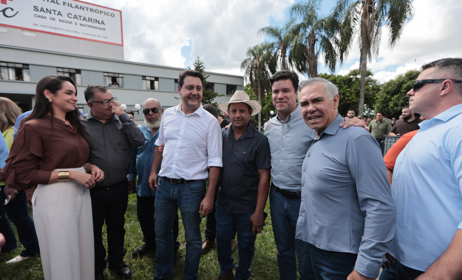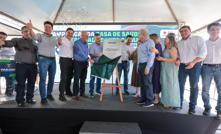 PRESENÇAS – Também participaram da entrega os secretários estaduais de Infraestrutura e Logística, Sandro Alex; e das Cidades, Guto Silva; o subchefe da Casa Civil, Lucio Tasso; o presidente da Assembleia Legislativa do Paraná, Alexandre Curi; o deputado estadual Luiz Claudio Romanelli; o vice-prefeito de Loanda, Antonio Gil; o presidente da Câmara dos Vereadores, Gabriel Feitoza Norte; a diretora-presidente da Casa de Saúde Santa Catarina, Luzia Catarina Mendonça Accorsi Cartelli; o superintendente de Relações Institucionais, Eduardo Andrade Pereira; e a superintendente de Operações, Lucia Lima Accorsi.
